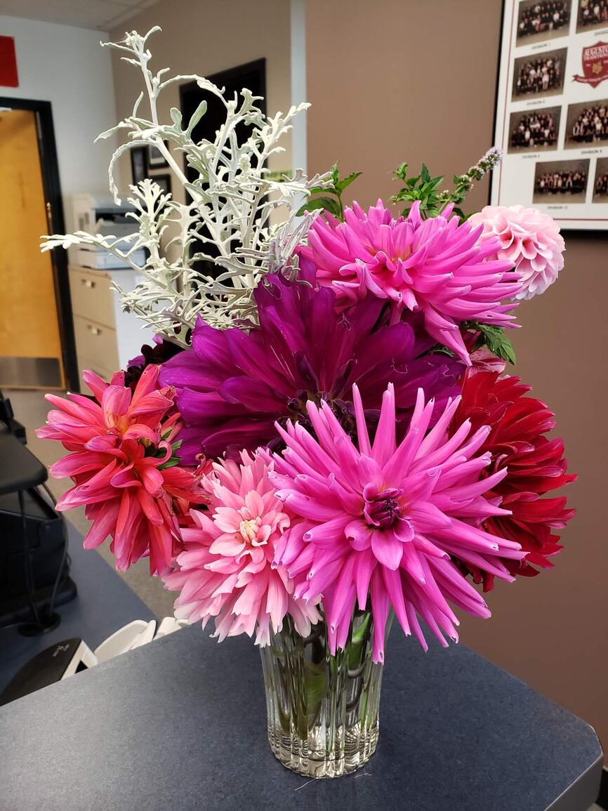 Breadcrumb Home Blog Posts blog Flowers from School Garden September 14, 2022 A BIG THANK YOU to Mrs. Diana McAllister, Kindergarten teacher (and part-time florist/gardener 😊) & Mr. Robert Carmichael, retired principal, our school garden volunteers, for the incredibly gorgeous flowers that brighten up our school!